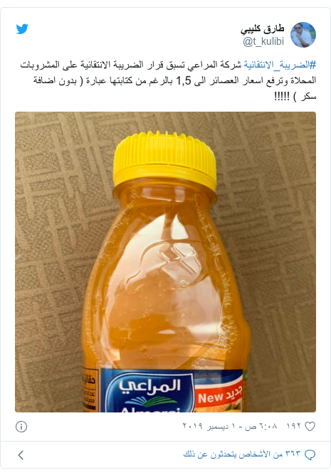وش سالفة الهاشتاق On Twitter المراعي مغردون يتفاجأون بفرض ضريبة المشروبات المحلاه 50 على عصائر المراعي التي ك تب عليها بدون إضافة سكر